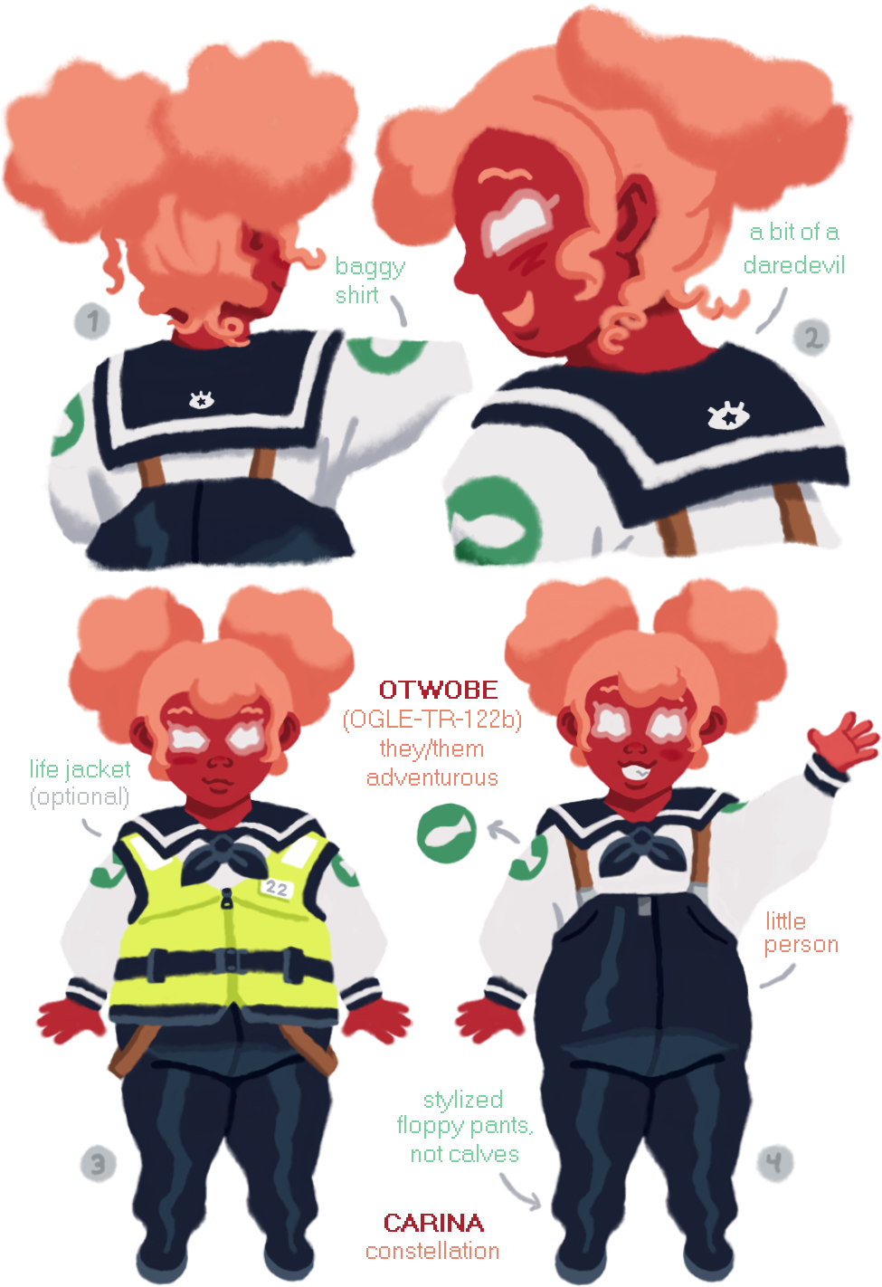 Naos and Otwobe are two star children who were made separately but got paired together almost instantly. At the time I was playing around with sizes and chose two stars, one small and one large.. Then I made them best friends because their demeanor and appearances ended up being so clashing and cute, it was just meant to be! Character 3 & 4 redesigned out of ~26!Below is an old drawing of them.
